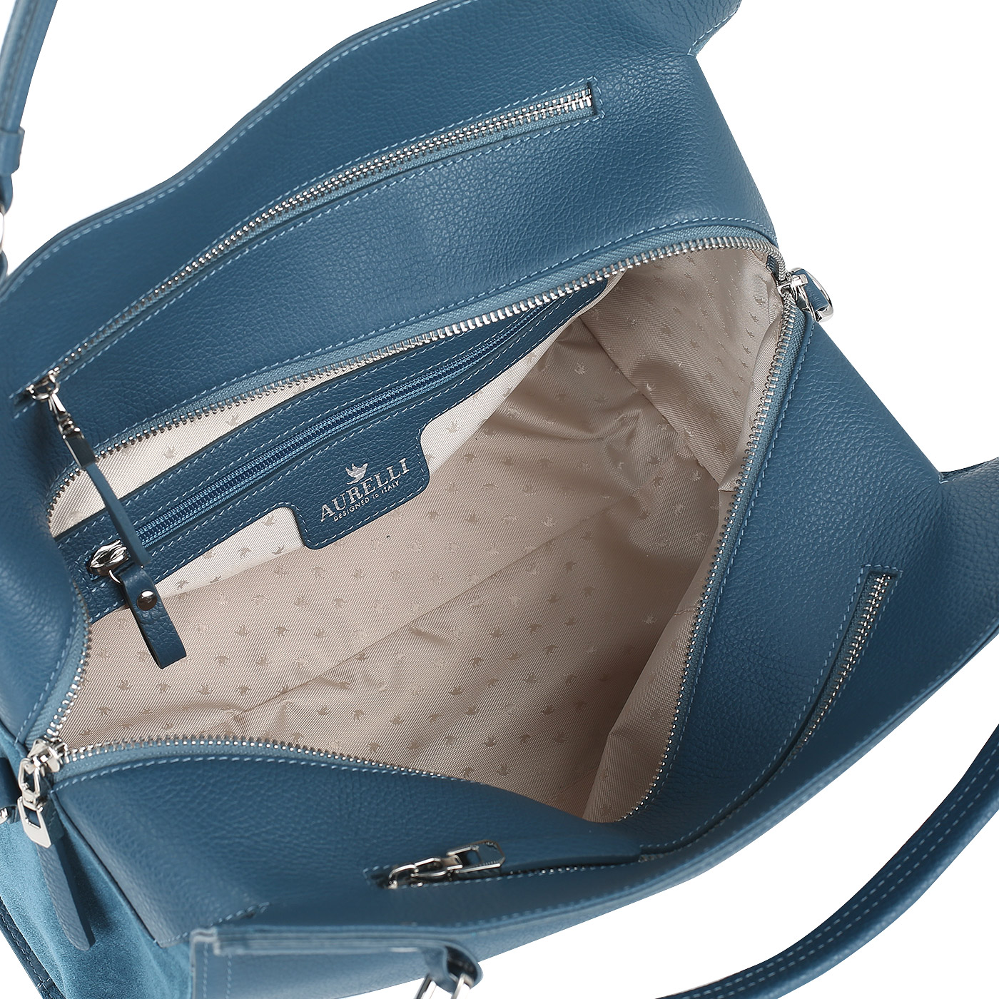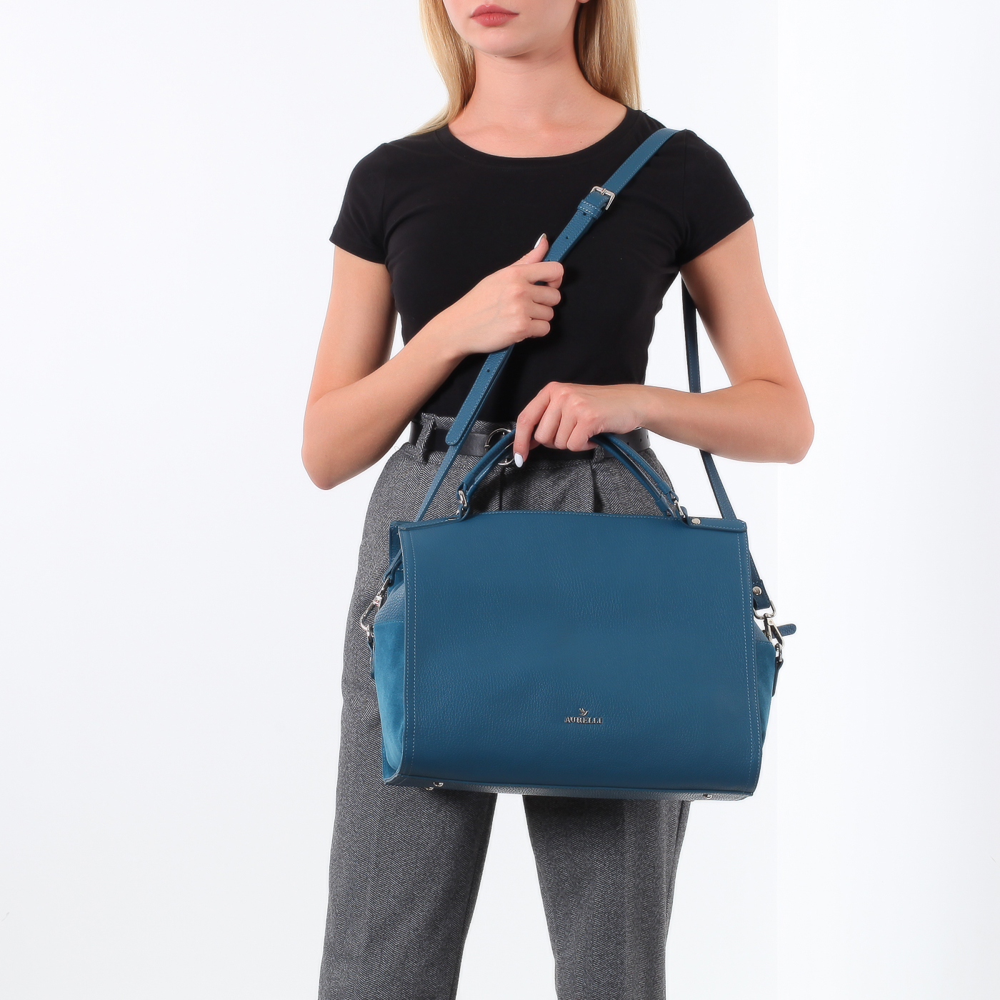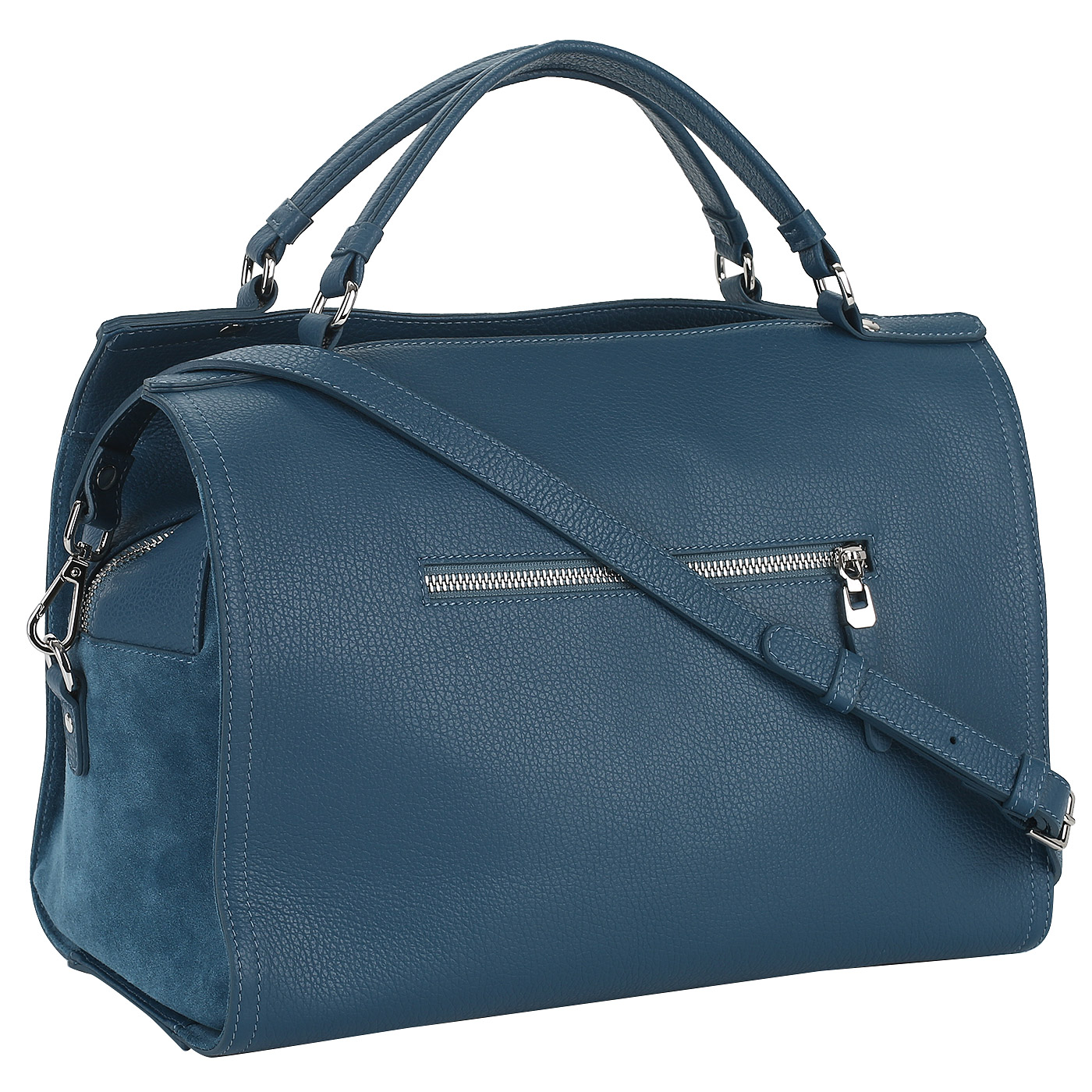 Сумка из мягкой кожи и замши Aurelli 18W0088-10S-petrolio - 2000558062411 синий натуральная кожа 33 x 26 x 18 Цена 10976 руб. купить в интернет-магазине PanChemodan.ru в Набережных Челнах