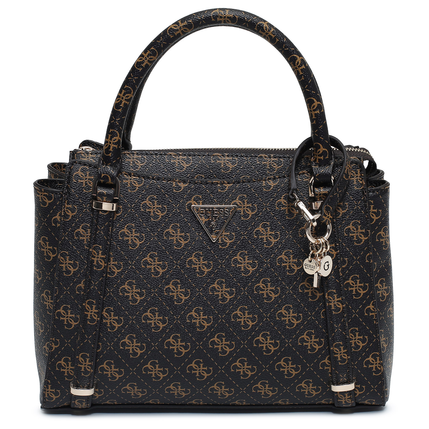 Сумка с двумя ручками Guess Eco Erica HWEQG9 51006_brown logo_pc - 2000558703185 коричневый полиуретан 29 x 22 x 11 Цена 13740 руб. купить в интернет-магазине PanChemodan.ru в Москве